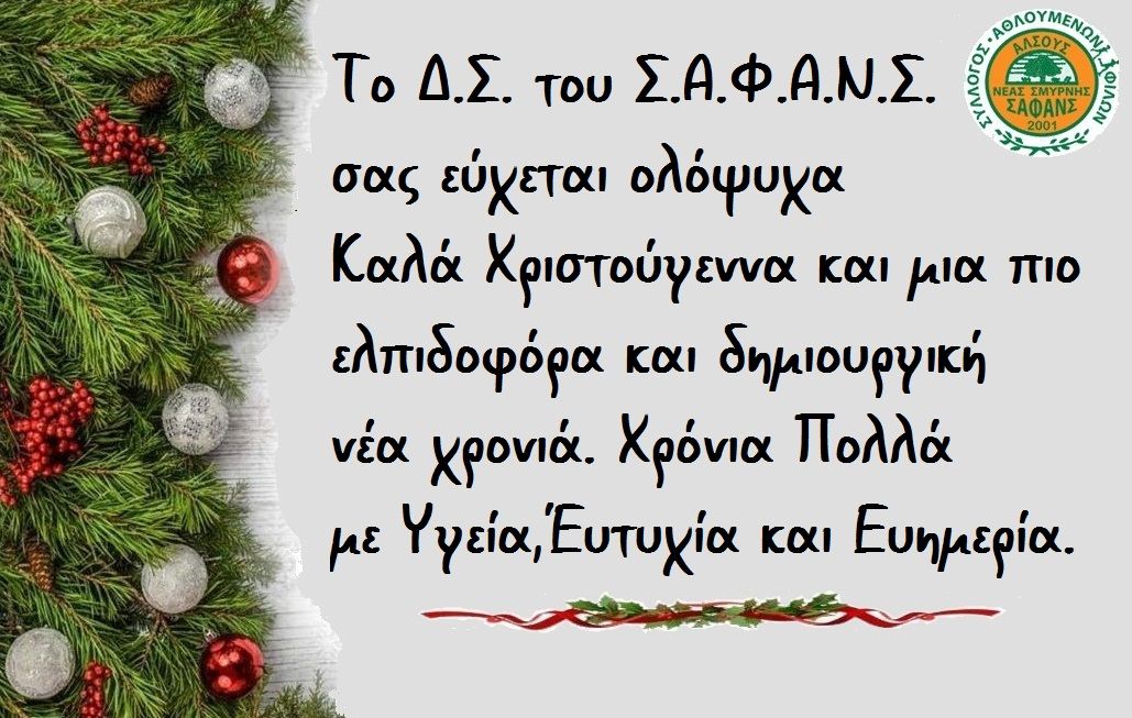 Ολόθερμες και εγκάρδιες ευχές από τον Σύλλογο Αθλουμένων ‘Αλσους Νέας Σμύρνης